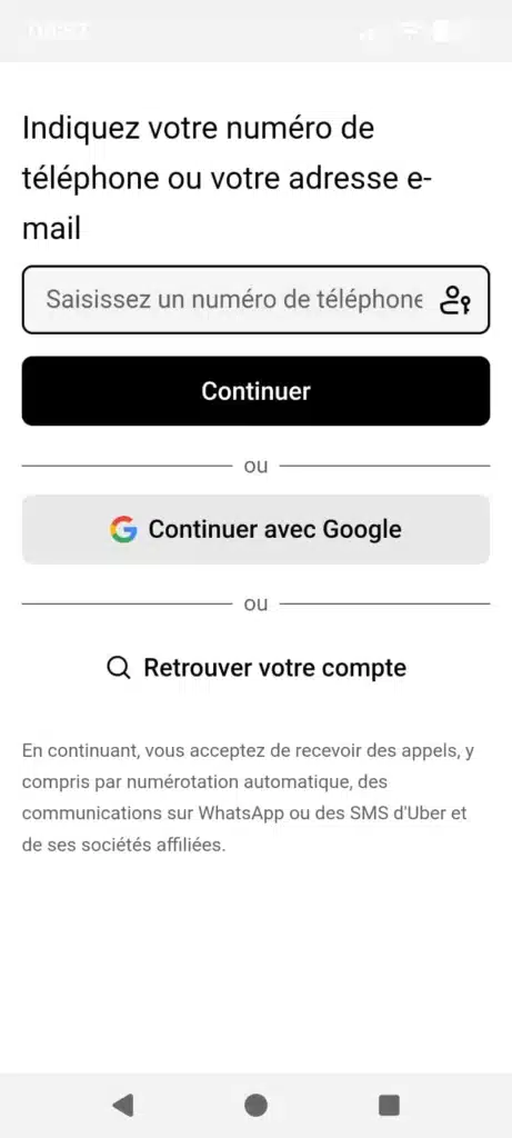 Il est maintenant temps de passer à la création de votre compte à l’aide de votre numéro de téléphone ou de votre adresse email. Vous pouvez également utiliser votre compte Google pour gagner du temps.