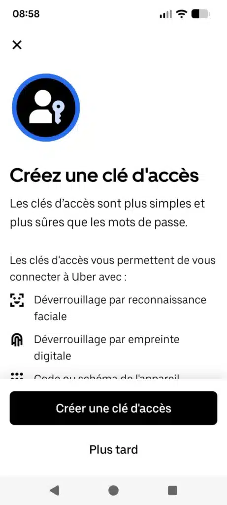 À cette étape, vous avez la possibilité de créer une clé d’accès pour faciliter l’accès à l’application. Vous pouvez également passer cette étape et le faire plus tard.