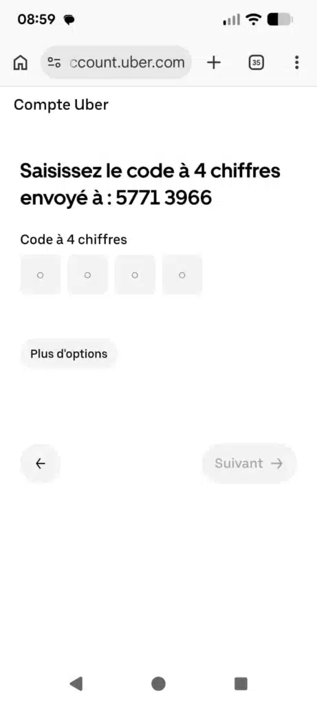 Pour valider votre compte, vous devez entrer le code à 4 chiffres que vous allez recevoir par SMS.