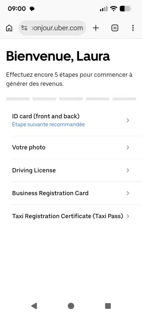 • L’inscription se fait via l’application Uber Driver en téléchargeant vos justificatifs.